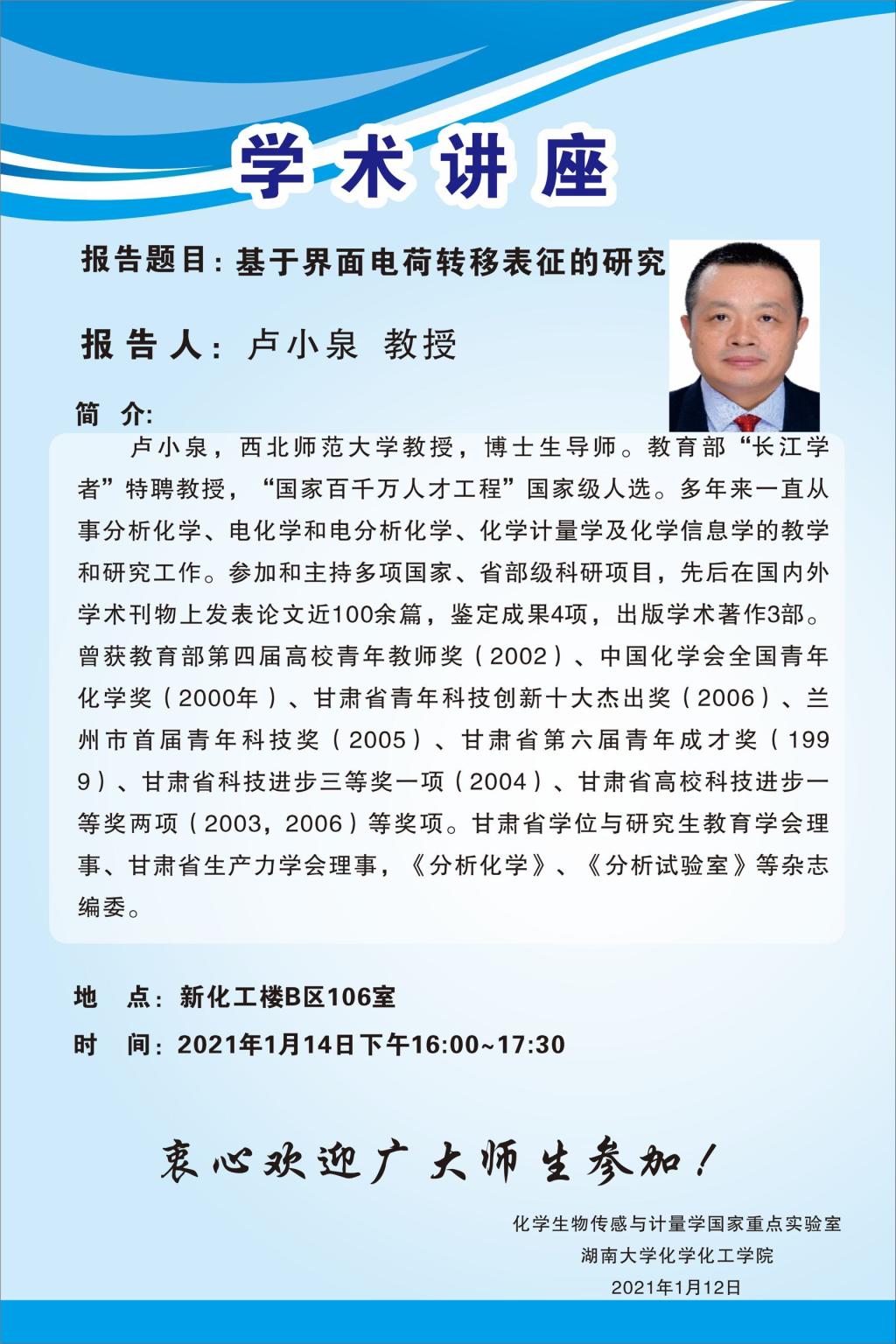 報告人: 盧小泉教授