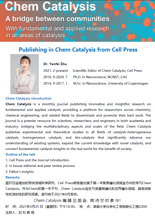 主講人:Dr. Yanfei Zhu Scientific Editor of Chem Catalysis, Cell Press