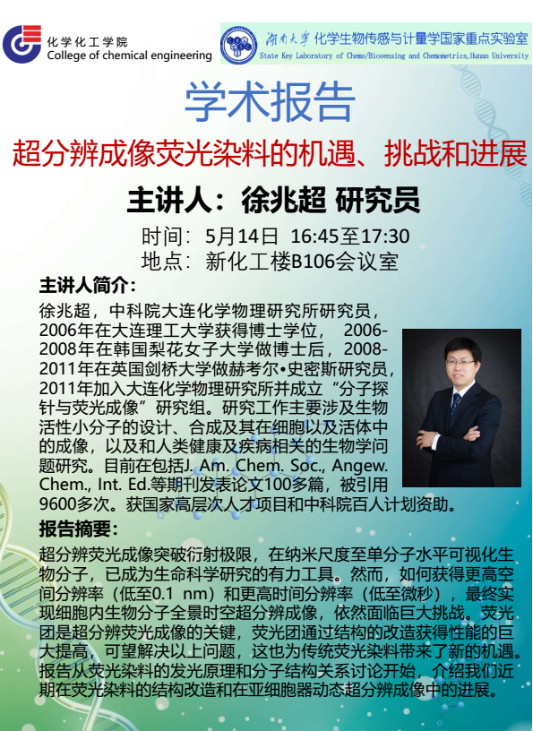 學術地點 新化工樓B區106會議室 主講人 徐兆超 研究員