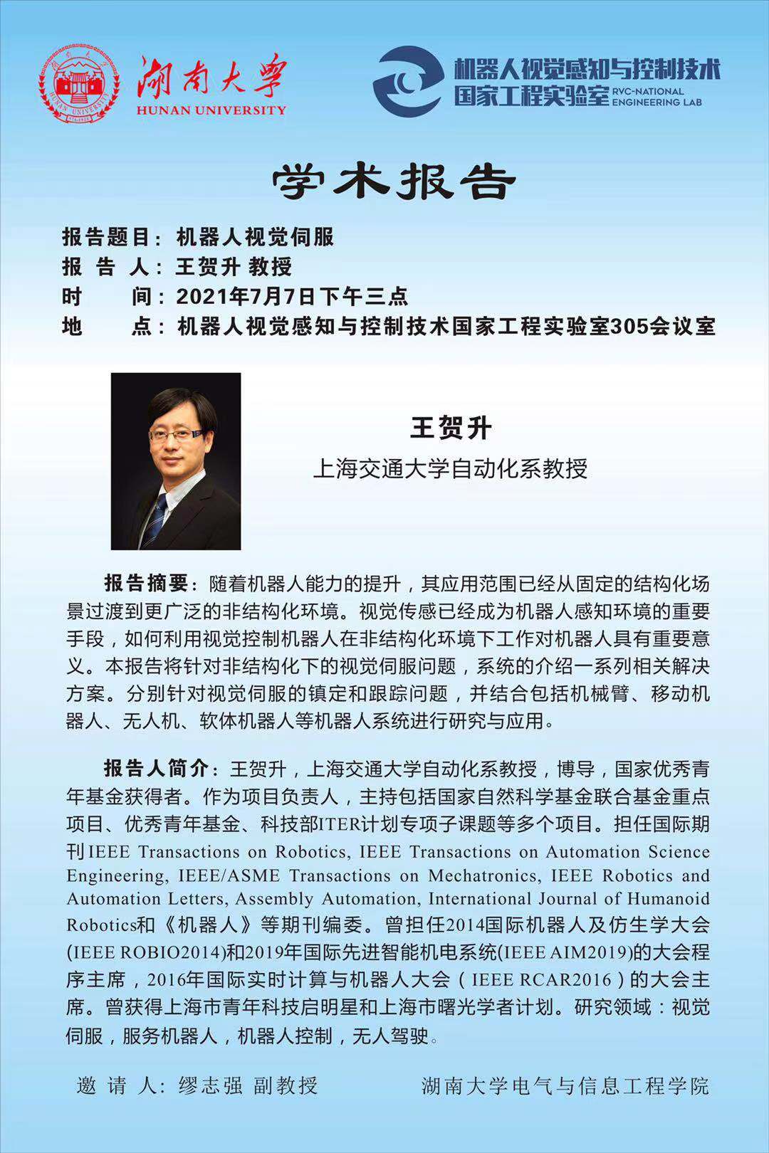 學(xué)術(shù)地點 機器人視覺感知與控制技術(shù)國家工程實驗室305會議室 主講人 王賀升 上海交通大學(xué)自動化系教授