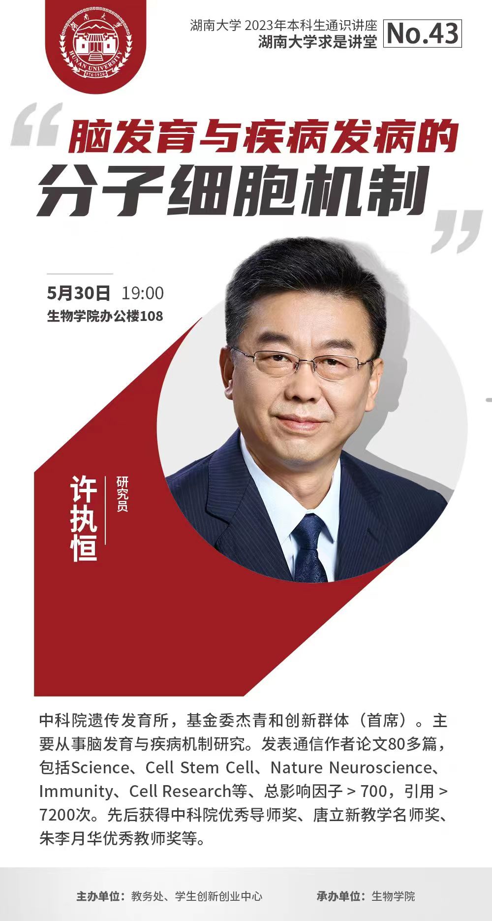 求是講堂|許執(zhí)恒:腦發(fā)育與疾病發(fā)病的分子細(xì)胞機(jī)制