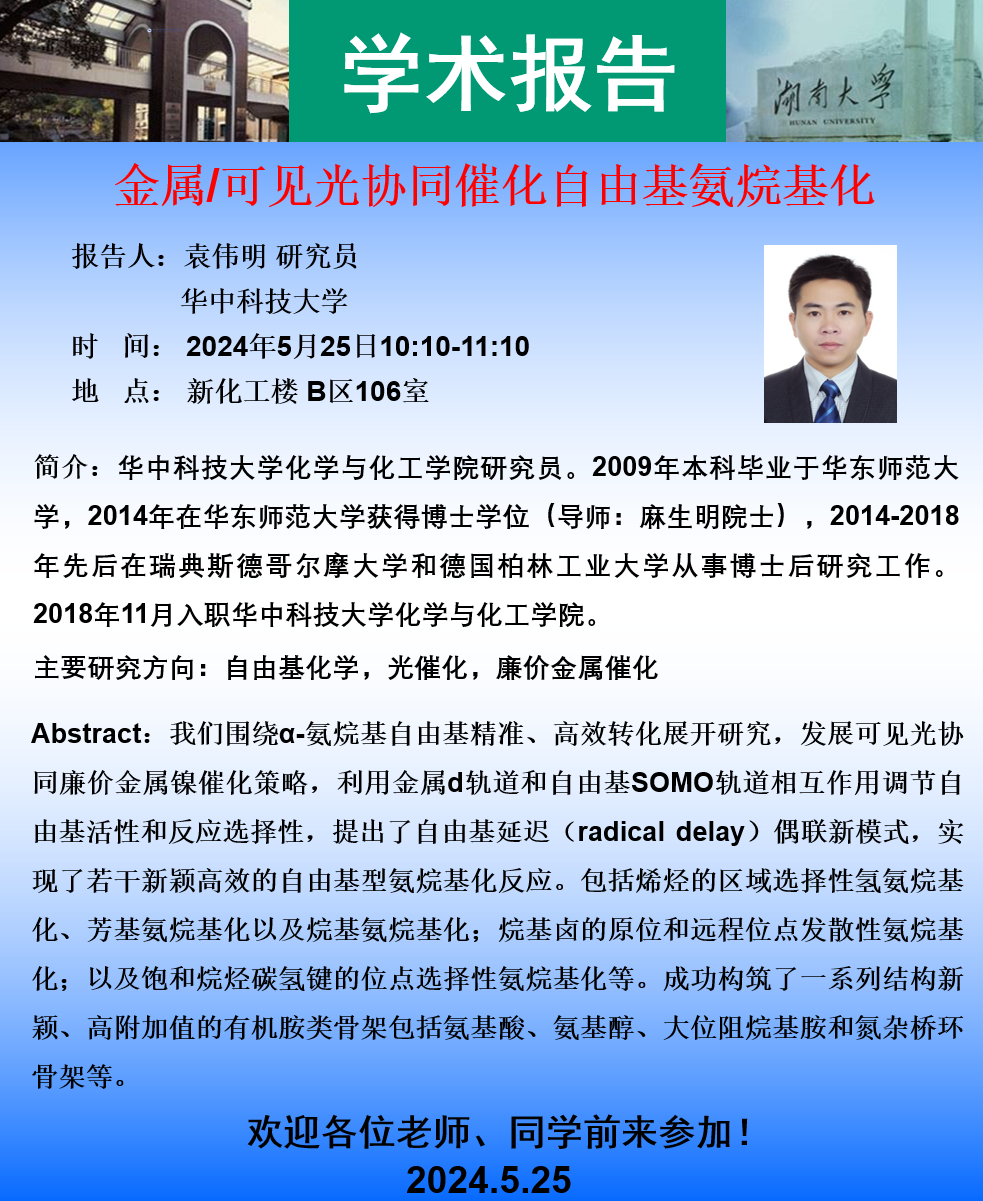 學(xué)術(shù)地點(diǎn) 新化工樓 B區(qū)106室 主講人 袁偉明