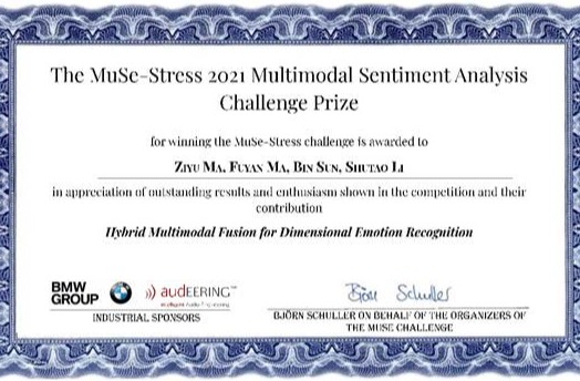 2021/11/01李樹濤教授團隊獲MuSe2021多模態連續情緒識別賽道冠軍日前,副校長、機器人學院院長李樹濤教授課題組團隊在多模態情感分析挑戰賽MuSe2021(The Multimodal Sentiment Challenge)獲得多模態連續情緒識別賽道冠軍。電氣與信息工程學院博士生馬子瑜和馬付嚴參賽,李樹濤... -